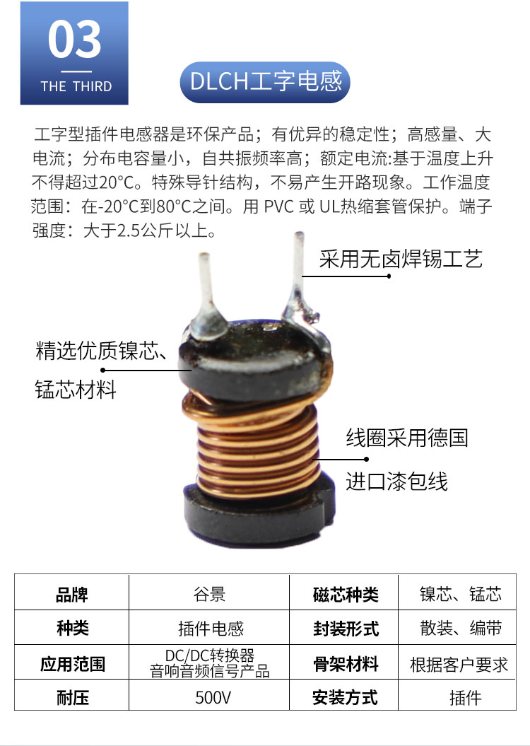 DLCR工字電感:尺寸:6.5*6.5-8.3*7.5;感量:1.2uH-270uH;精度:K級(jí)(±10%)、M級(jí)(±20%)、N級(jí)(±30%);電流量:0.21A-4.1A;特點(diǎn):小體積,分布電容小,自共振頻率高;適用于:電腦、電力設(shè)備、DC/DC轉(zhuǎn)換等。詳情咨詢:0512-65368862。 DLCR電感,DLCR工字電感,工字屏蔽電感,杭州DLCR工字電感,上海DLCR工字電感,南京DLCR工字電感,無(wú)錫DLCR工字電感,浙江DLCR工字電感,寧波DLCR工字電感,常州DLCR工字電感,蘇州DLCR工字電感